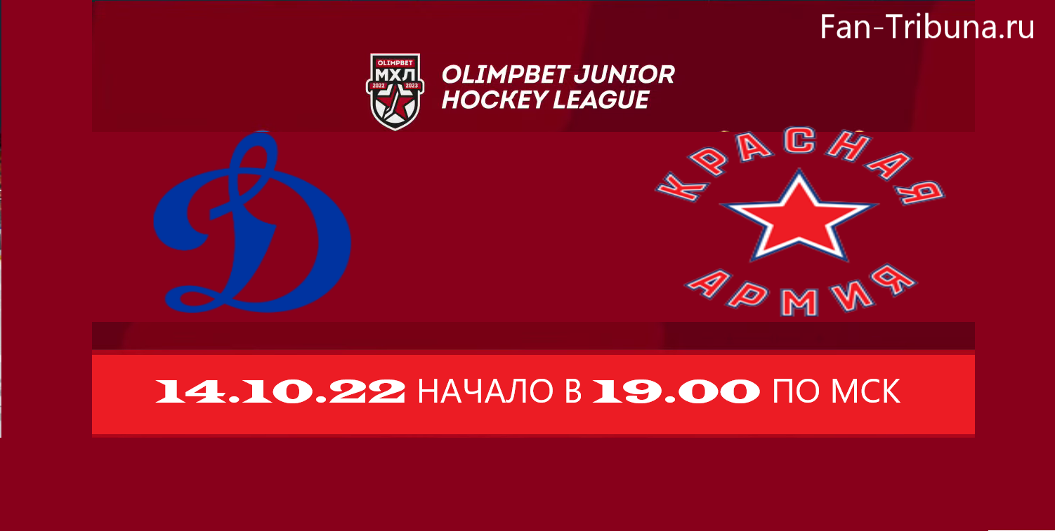 Привет всем любителям хоккея с шайбой ! 14 октября 2022 года пройдет матч регулярного чемпионата Молодежной Хоккейной Лиги. ХК Динамо Москва принимает ХК Красная Армия .Прямую трансляцию игры вы сможете посмотреть на этом сайте Fan-Tribuna.ru. Всем удачи и приятного просмотра. Начало в 19.00 по МСК.